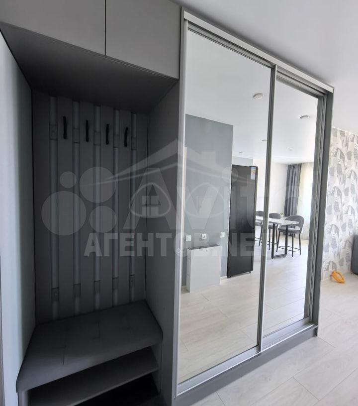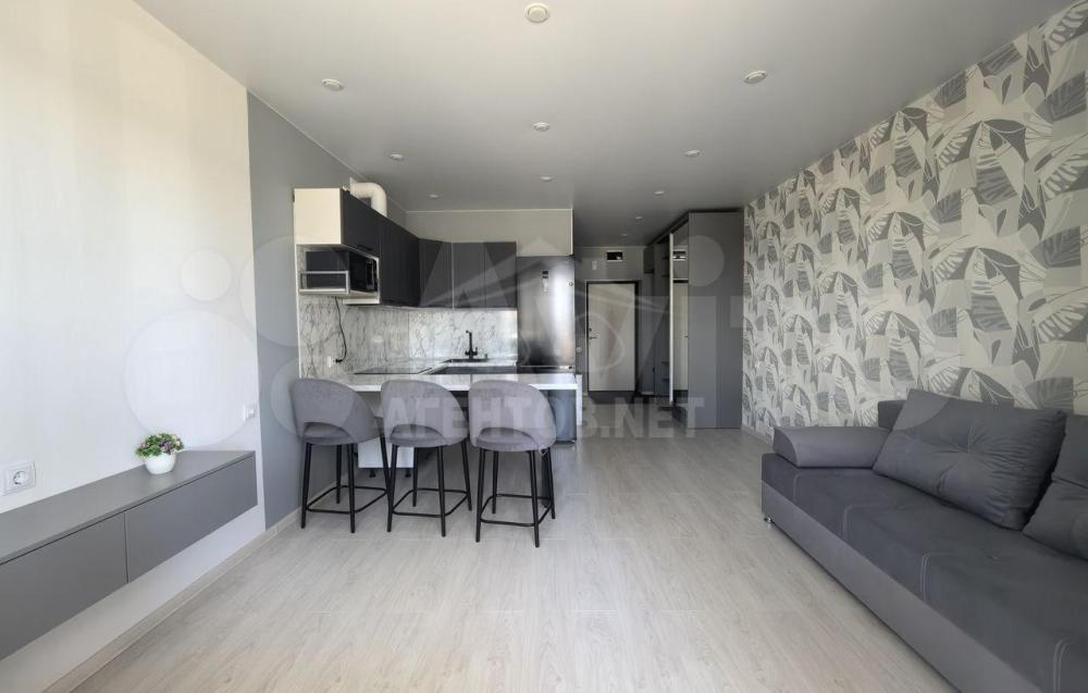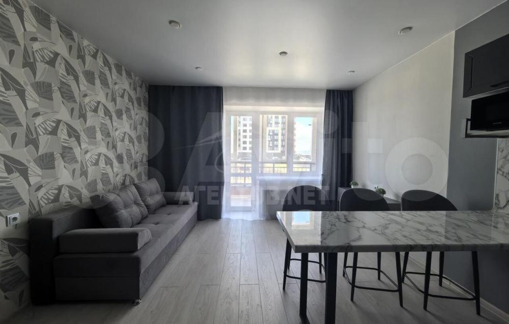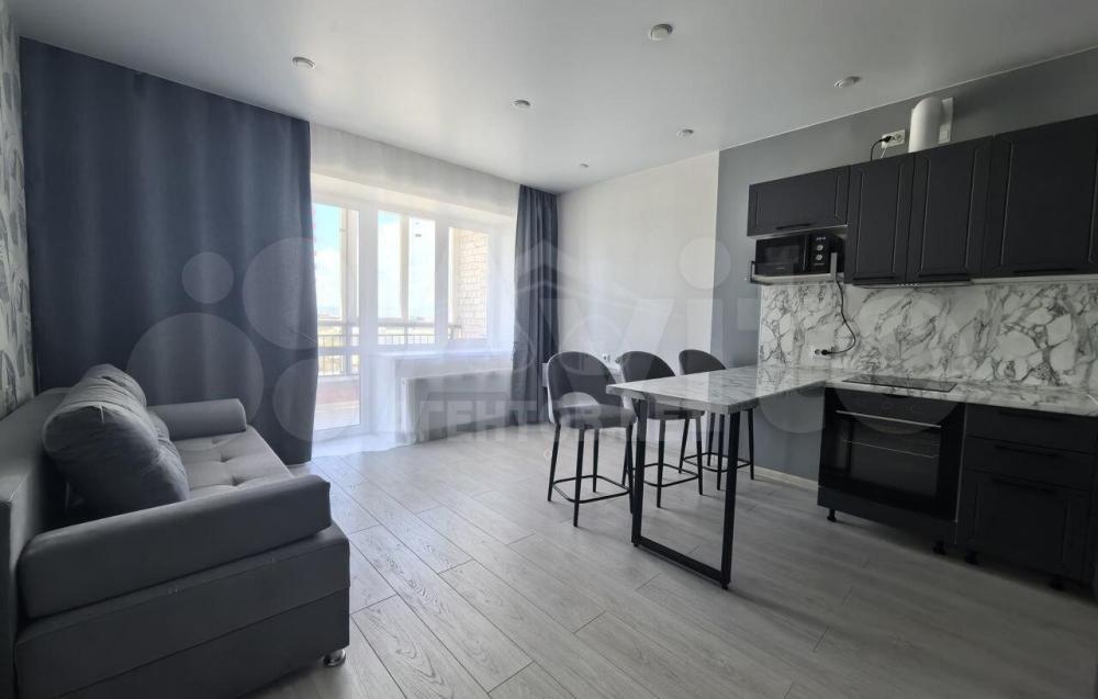 Количество комнат: студия; Общая площадь: 27.3 м²; Этаж: 1 из 9; Балкон или лоджия: лоджия; Дополнительно: гардеробная; Санузел: совмещенный; Окна: во двор, на солнечную сторону; Ремонт: евро; Мебель: кухня, хранение одежды, спальные места; Техника: холодильник; Способ продажи: свободная; Тип дома: кирпичный; Год постройки: 2022; Этажей в доме: 9; Пассажирский лифт: 1; Грузовой лифт: 1; Двор: закрытая территория, детская площадка, спортивная площадка; Парковка: открытая во дворе;