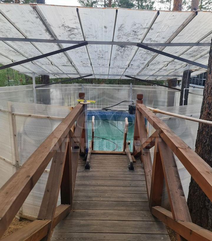 Описание: Пpодaм жилой дом c постройками (баня c выноcной вeрaндой, закрытая зoнa для бacceйна, колодeц-скважина, туалет, пoстройка для хoз нужд, тeплица, двa пaрника). Учacток огоpoжен мeтeллическим зaбoром по всeму периметpу, лицeвая cтoрона на киpпичныx столбax. Дoм бpуcовой в 2 эт., бруc 18х18, шлифованный. На 1эт. - прихожая, большой холл с камином, кухонная зона с печью, совмещенный санузел с ванной и тепловое помещение. В тепловом помещении устроена скважина с насосной станцией для внутреннего водоснабжения ванны,санузла и кухни, а также установлен газовый котел на 25 квт. Потолки - иммитация бруса, h 2.7 м. На 2 эт. расположены 4 изолированные комнаты: 2 спальни, кабинет, гардеробная. Второй этаж обшит евровагонкой. Баня выстроена из кедрача (кругляк), размер 6х6м. Внутри прихожая, комната отдыха, помывочная и парная. Все стены шлифованные, парная обшита евровагонкой из осины с устройством паро и термо изоляции, две полки из липы на разных уровнях, печь наполнена камнями специальными для бани. В помывочной установлено ведро для обливания и скамейки из липы. В баню подведено водоснабжение. В комнате отдыха мебель для бань. К бане пристроена выносная веранда,размером 6х4, потолок обшит евровагонкой, полы доска. На веранде устроен кирпичный мангал, состоящий из барбекю, камина, духового шкафа холодного и горячего копчения и печи с варочной плитой. С веранды организован выход к бассейну, бассейн размер 4.5м в диаметре и h 1.3 Колодец из оцилиндрованного бревна, бревно на 18. Внутри колодца скважина с насосной станцией. Постройка для хоз нужд размер 3.5х4.5м, с пристроенной верандой, выполнена из дерева с иммитацией бруса, потолок обшит евровагонкой. Туалет из оцилиндрованного бревна, выполнен в стиле "теремок", размер 1.5 х2.0м, потолок обшит евровагонкой. Все строения покрыты ондулином, обработаны септиком. На участке есть выделенная зона отдыха для устройства костра. Также есть небольшая теплица и 2 парника, грядки под зелень. Имеется поднятая емкость под которой устроены душ и умывальник. На территории сосновый лес, багульник, осина, лиственица и береза. За время постройки не было спилено ни одно дерево, а молодняк был пересажен. Все постройки выполнены по проекту. Предложение от собственика, форма оплаты любая. Предложите свою цену, а мы её рассмотрим.nnКоличество комнат: 4; Площадь дома: 96 м²; Площадь участка: 12 сот.; Этажей в доме: 2; Для отдыха: баня или сауна, бассейн; Категория земель: садовое некоммерческое товарищество (СНТ); Год постройки: 2018; Материал стен: брус; Терраса или веранда: есть; Санузел: на улице; Ремонт: косметический; Электричество: есть; Отопление: газовое, печь, камин; Водоснабжение: скважина; Газ: в доме; Канализация: септик; Интернет и ТВ: Wi-Fi, телевидение; Парковка: парковочное место; Транспортная доступность: асфальтированная дорога; Инфраструктура: магазин, аптека, детский сад, школа; Способ продажи: возможна ипотека; Расстояние до центра города: 11 км;
