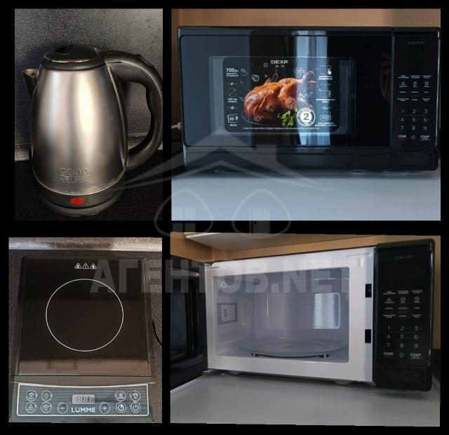 Квартира укомплектована мебелью и бытовой техникой для комфортного проживания: кухонный гарнитур, диван, прихожая, холодильник, стиральная машина, индукционная плита, микроволновая печь, мультиварка, чайник, пылесос, сушилка для вещей.