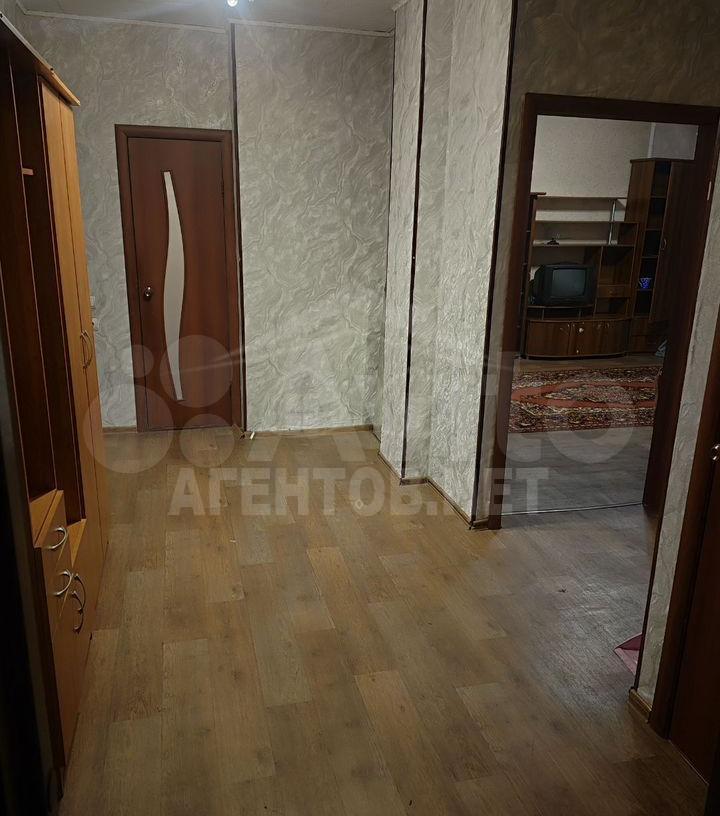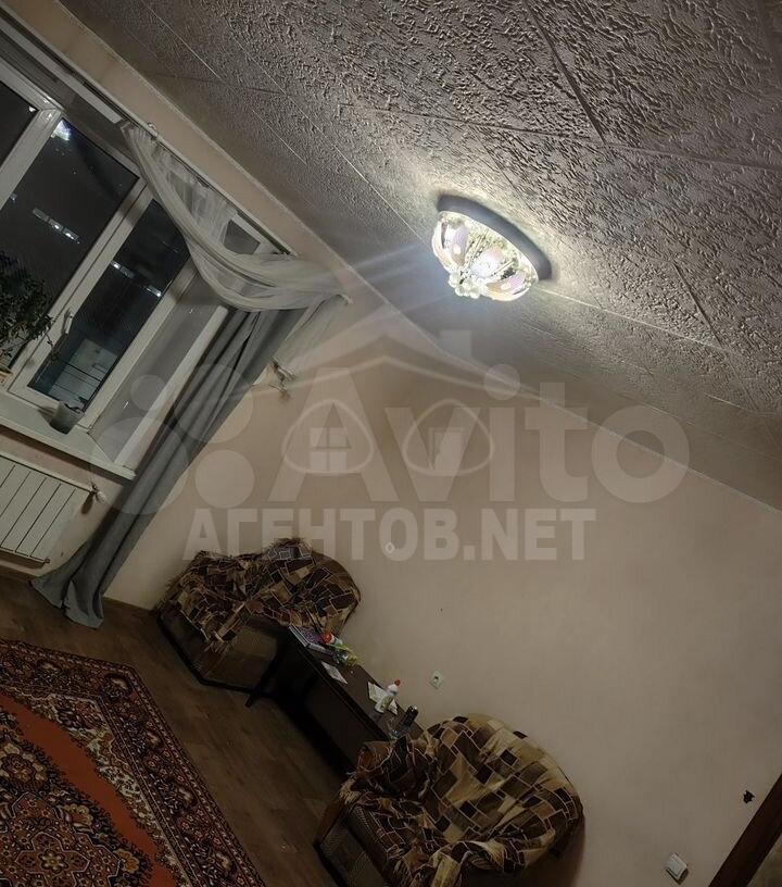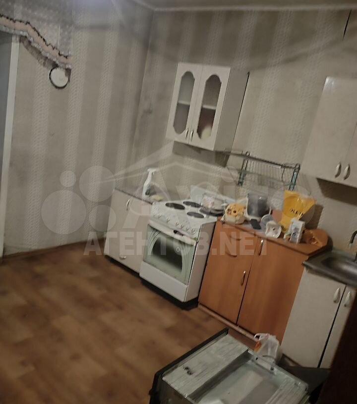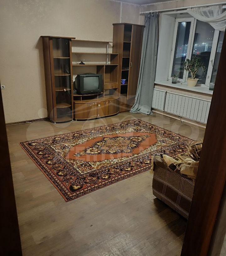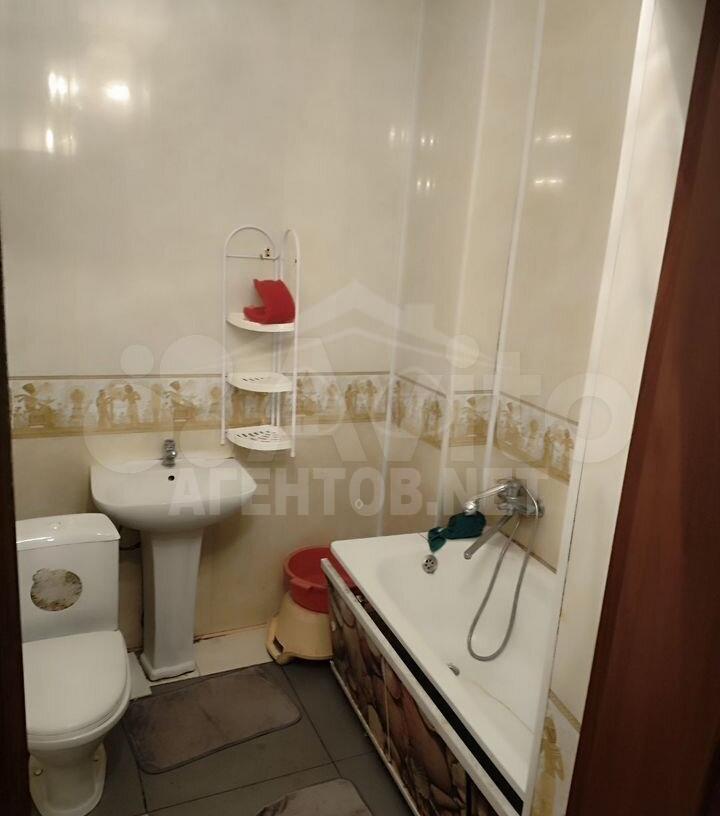 В квартире имеется вся необходимая мебель: шкафы, диван, обеденный стол и стулья. Из бытовой техники — стиральная машина и телевизор. Санузел совмещенный, выполнен в светлых тонах.