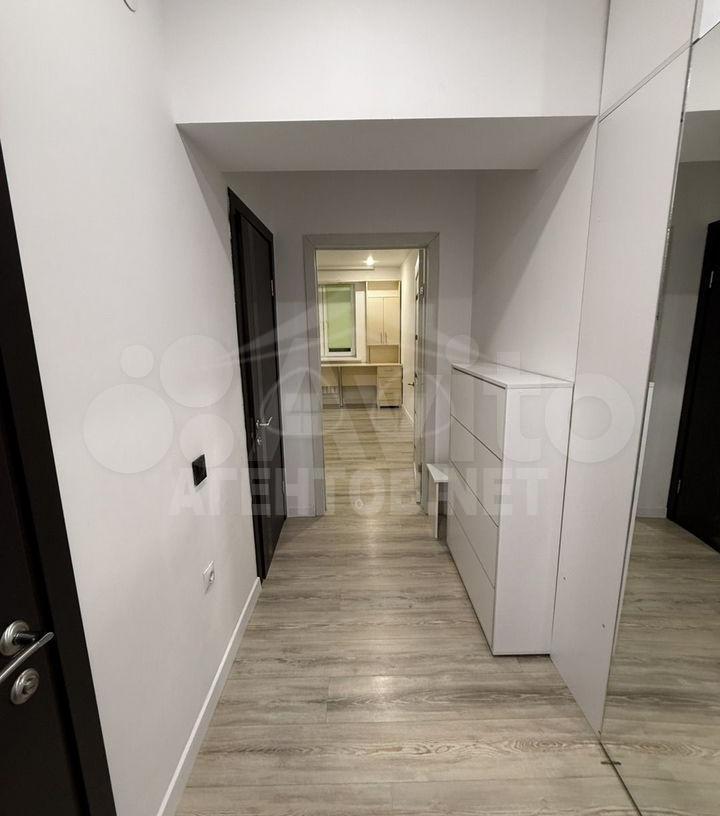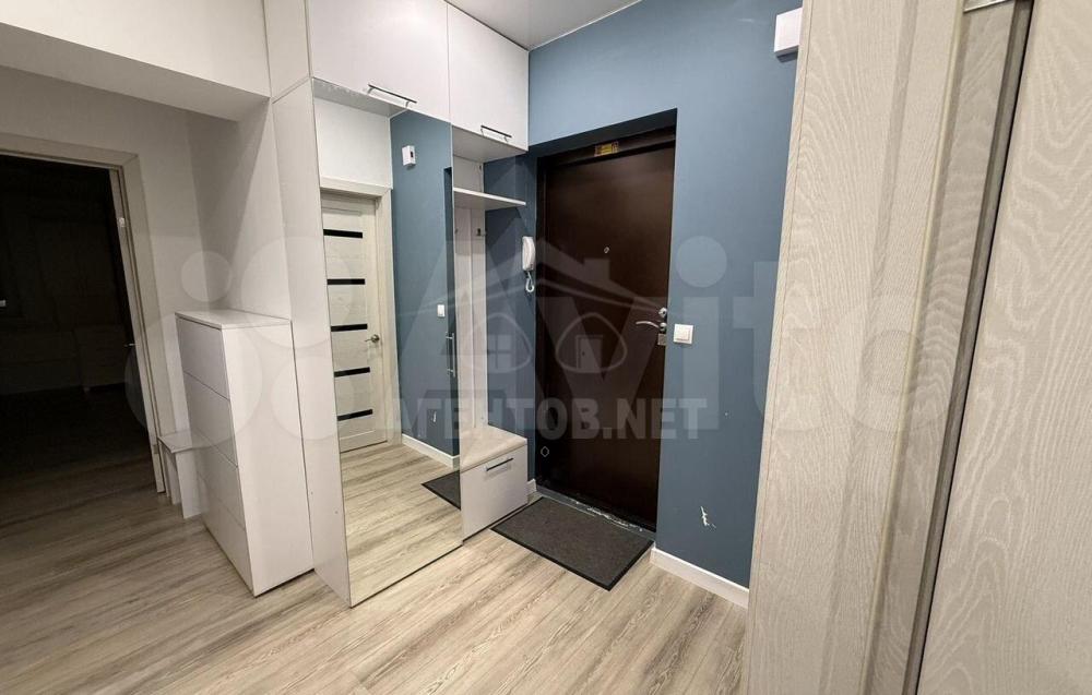 В прихожей установлен вместительный шкаф с банкеткой и высоким зеркалом, отдельная обувница, подключен домофон с возможностью отключения звука на нем.