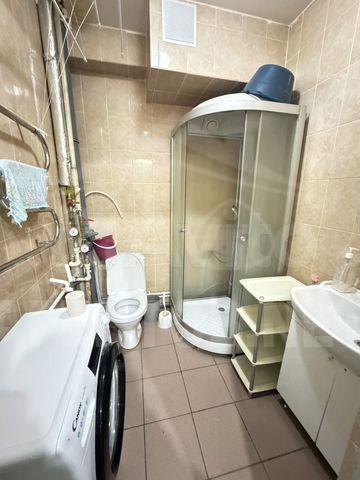 Сдается квартира-студия на длительный срок. Кухня оборудована холодильником и плитой. Ванная комната совмещенная, оснащена душевой кабиной и стиральной машиной.Курение запрещено, можно проживание с детьми, но без животных.