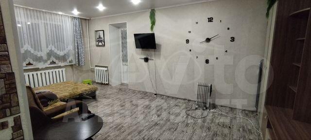 В квартире выполнен косметический ремонт. Просторная кухня оснащена необходимой бытовой техникой, включая холодильник и плиту. В гостиной установлен телевизор и шкафы для хранения вещей. Из мебели также имеются вместительные шкафы в прихожей.