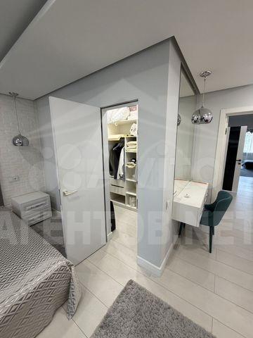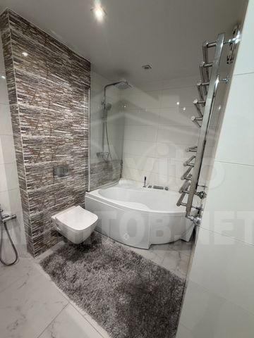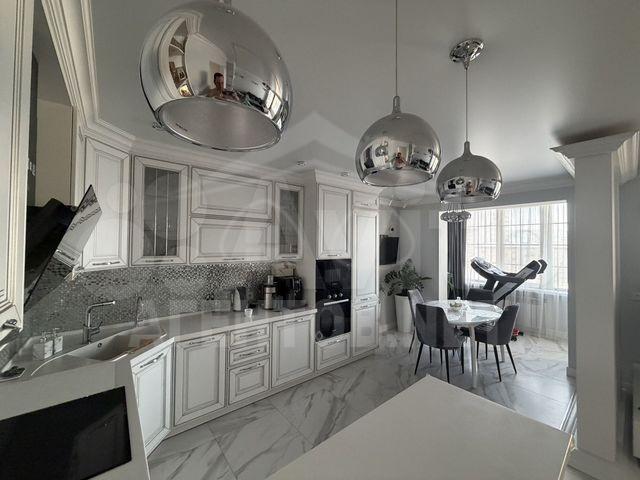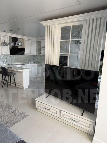Кухня площадью 15 м² выполнена в светлых тонах и оборудована современной бытовой техникой, включая холодильник и посудомоечную машину. В квартире установлен кондиционер, что делает проживание комфортным в любое время года.