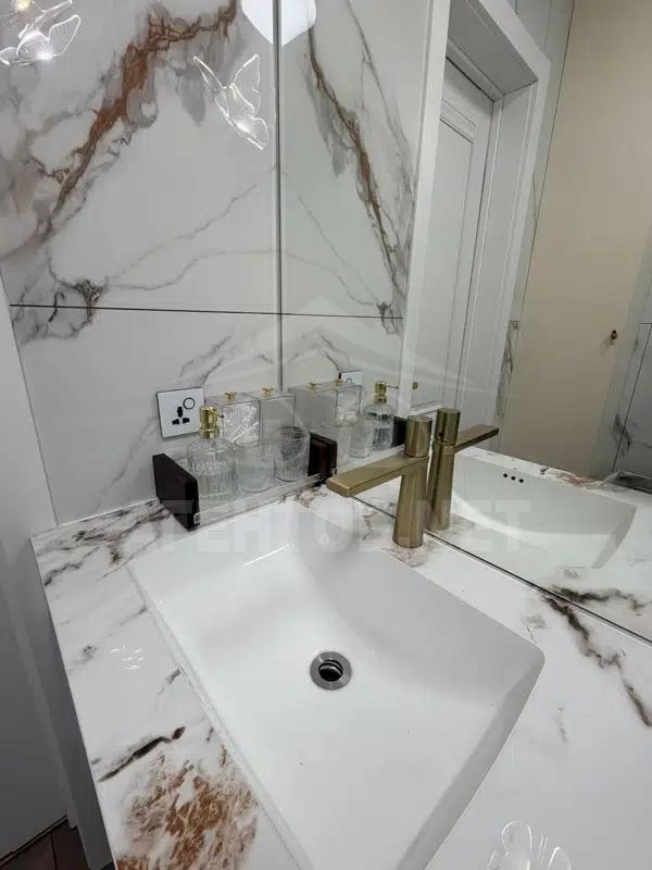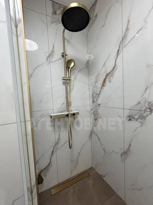 — ванная: широкоформатный керамогранит, тёплые полы, система фильтрации воды